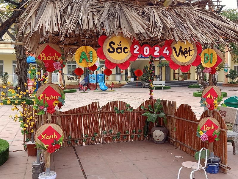 Thực hiện kế hoạch nhiệm vụ năm học và kế hoạch hoạt động của Hội Cha mẹ học sinh trường mầm non Hợp Tiến B, Hòa chung với không khí nhộn nhịp, tất bật của những ngày sát Tết nguyên đán Giáp Thìn 2024, Đội ngũ CBGVNV cùng phụ huynh học sinh chuẩn bị sẵn sàng cho các con trải nghiệm gói bánh chưng và dự phiên chợ tết quê em .