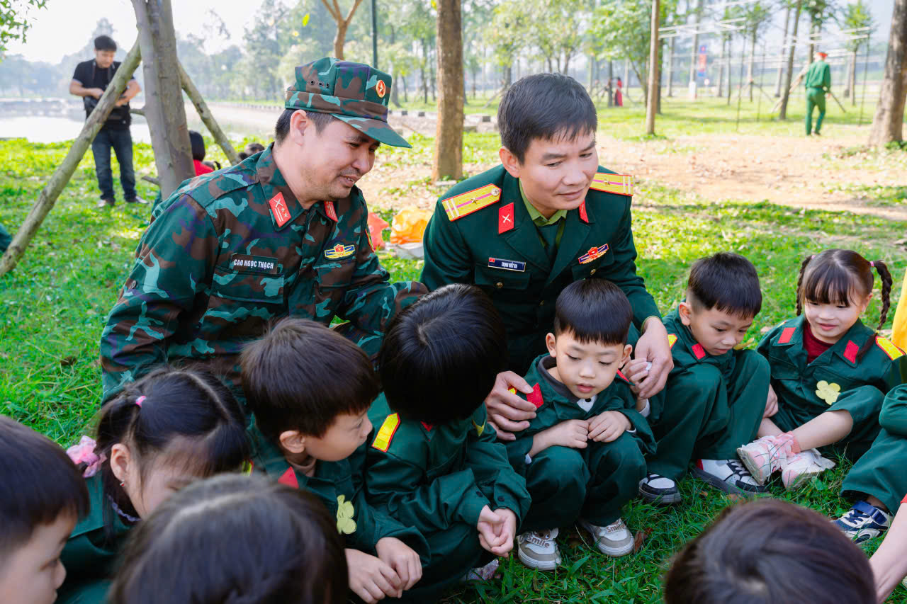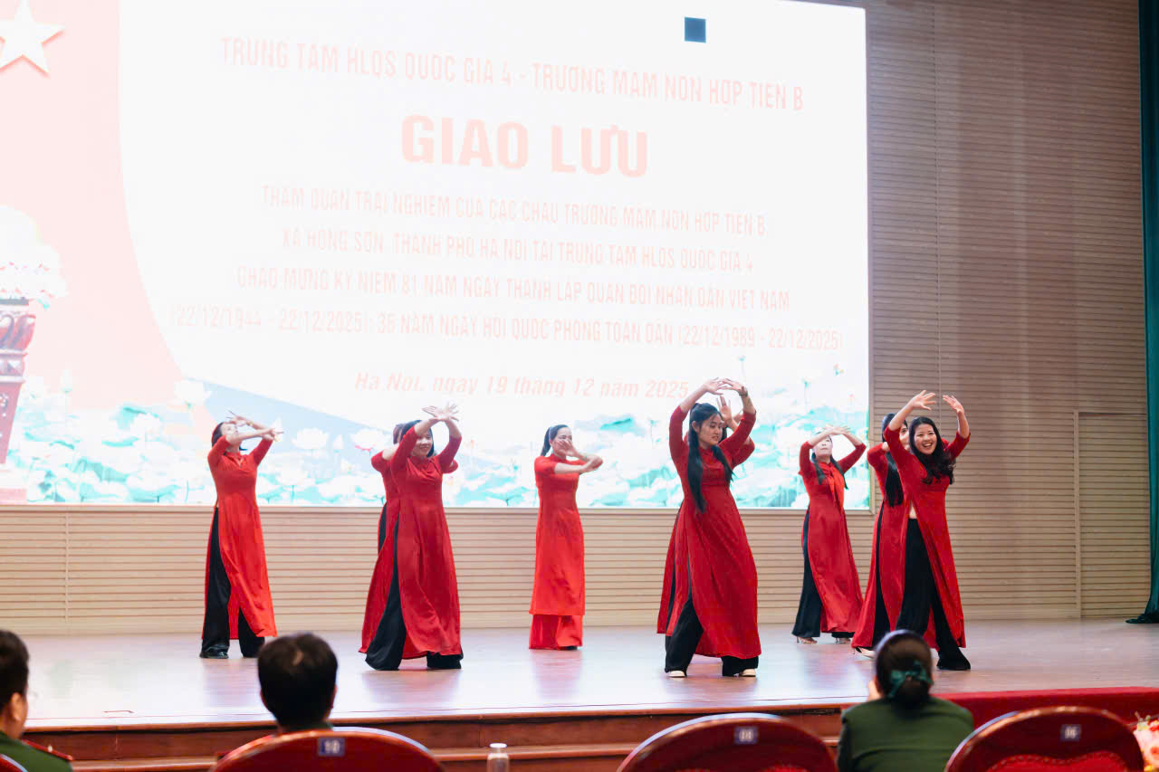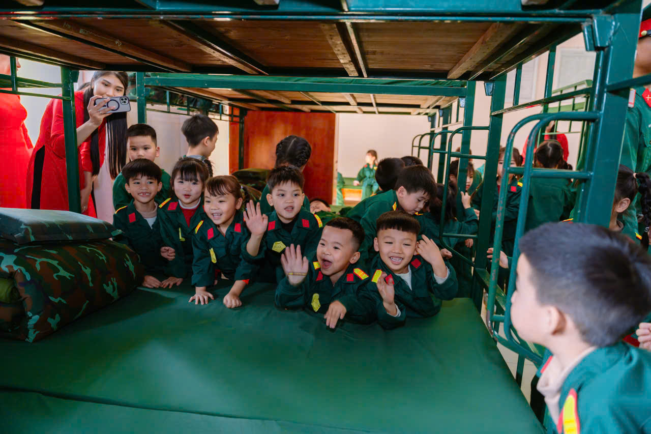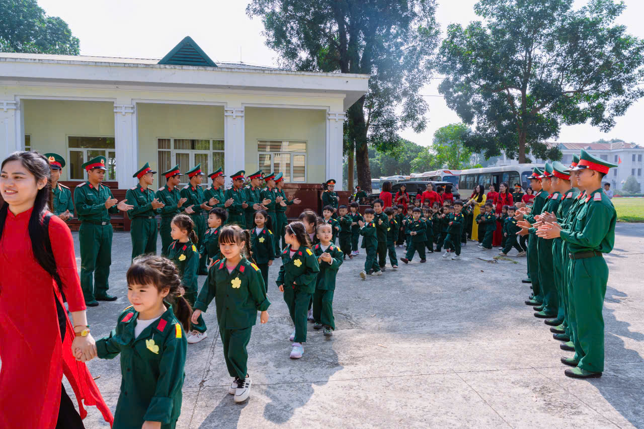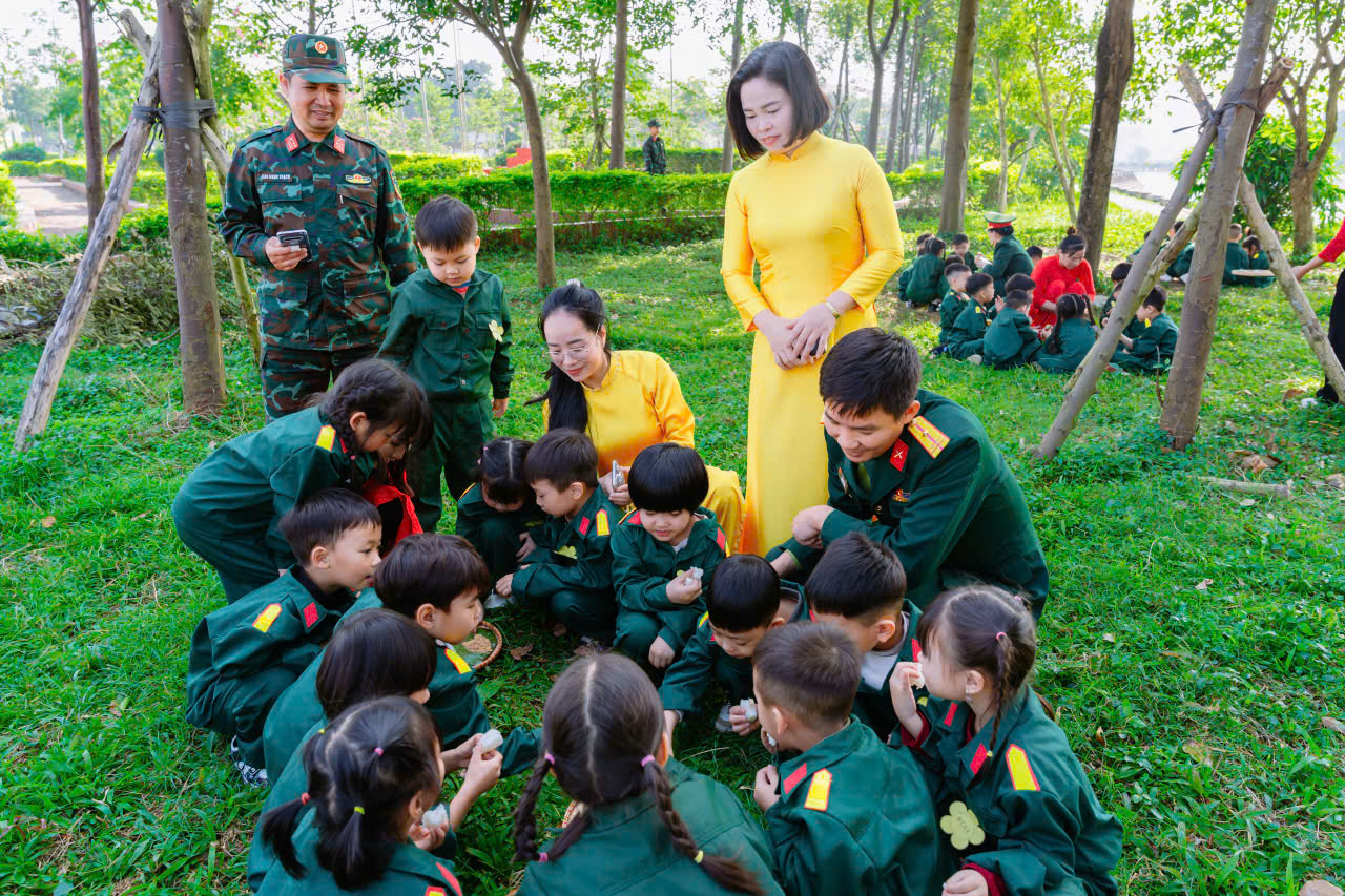 23/12/2025 A- A A+ | TRƯỜNG MN HỢP TIẾN B TỔ CHỨC HĐ TRẢI NGHIỆM THAM QUAN TTHL QUÂN SỰ QUỐC GIA 4 CHÀO MỪNG 81 NĂM NGÀY TLQĐND DÂN VIỆT NAM 22/12/1944 – 22/12/2025 Xem Chia s? Hòa chung trong không khí phấn khởi, tự hào của cả nước chào mừng 81 năm Ngày thành lập Quân đội nhân dân Việt Nam (22/12/1944 – 22/12/2025), Trường Mầm non Hợp Tiến B đã tổ chức cho các bé tham gia hoạt động trải nghiệm tham quan tại Trung tâm Huấn luyện Quân sự Quốc gia 4. Hình ảnh: Giao lưu văn nghệ của cô trò trường mầm non Hợp Tiến B Hình ảnh: Nhà trường có bố hoa dành tặng các chú bộ đội Hình ảnh các chú bộ bộ đội tặng quà cho các cháu Hình ảnh Các chú bộ đội tập luyện thể dục buổi sáng Đây là hoạt động trải nghiệm có ý nghĩa giáo dục sâu sắc, nhằm giúp trẻ được làm quen, tìm hiểu về hình ảnh người chiến sĩ Quân đội nhân dân Việt Nam, qua đó bồi dưỡng cho trẻ tình yêu quê hương, đất nước, lòng biết ơn và sự kính trọng đối với các chú bộ đội – những người luôn ngày đêm rèn luyện, sẵn sàng bảo vệ Tổ quốc, giữ gìn cuộc sống bình yên cho nhân dân. Hình ảnh các con đến thăm thao trường của các chú bộ đội Trong chuyến tham quan, các bé được trực tiếp quan sát khu doanh trại, tìm hiểu về môi trường sinh hoạt, huấn luyện của các chú bộ đội; được nghe giới thiệu về trang phục, tác phong, kỷ luật cũng như những hoạt động rèn luyện hàng ngày trong quân đội. Những nội dung trải nghiệm được tổ chức phù hợp với lứa tuổi mầm non, tạo cho trẻ sự hứng thú, tò mò và niềm vui khi tham gia. Hình ảnh: các con đến thăm nơi nghỉ của các chú bộ đội Trong chuyến tham quan tại Trung tâm Huấn luyện Quân sự Quốc gia 4, các bé được quan sát hình ảnh các chú bộ đội gấp chăn màn vuông vắn, gọn gàng. Qua đó, trẻ hiểu thêm về tính kỷ luật, nề nếp sinh hoạt và tác phong nghiêm túc của người lính, góp phần giáo dục trẻ ý thức ngăn nắp, gọn gàng ngay từ nhỏ. Hình ảnh các chú bộ đội gấp chăn màm Đặc biệt, khi đến doanh trại, các con còn được trải nghiệm ăn cơm nắm muối vừng – bữa ăn giản dị, đậm chất người lính. Qua hoạt động này, trẻ hiểu thêm về tinh thần giản dị, tiết kiệm, vượt khó của các chú bộ đội, từ đó hình thành thái độ trân trọng lao động, biết quý trọng bữa ăn và thêm yêu mến hình ảnh “Bộ đội Cụ Hồ”. Hình ảnh: Các con được ăn cơm nắm muối vừn Thông qua hoạt động trải nghiệm thực tế, các bé không chỉ có thêm những hiểu biết ban đầu về quân đội mà còn trở nên mạnh dạn, tự tin hơn, biết lắng nghe, quan sát và hình thành những cảm xúc tích cực đối với quê hương, đất nước. Đây cũng là dịp để giáo dục trẻ biết yêu hòa bình, biết ơn những người đã và đang cống hiến vì sự bình yên của Tổ quốc. Thông qua hoạt động này, Trường Mầm non Hợp Tiến B mong muốn góp phần bồi dưỡng cho trẻ những giá trị giáo dục nền tảng ngay từ lứa tuổi mầm non, đồng thời tạo nên những kỷ niệm đẹp, đáng nhớ trong hành trình trưởng thành của các con. Nhà trường xin trân trọng cảm ơn sự quan tâm, tạo điều kiện của các cấp lãnh đạo, Trung tâm Huấn luyện Quân sự Quốc gia 4, cùng sự đồng hành, phối hợp của các bậc phụ huynh đã góp phần để hoạt động diễn ra an toàn, ý nghĩa và thành công tốt đẹp. Tập tin đính kèm Tải về