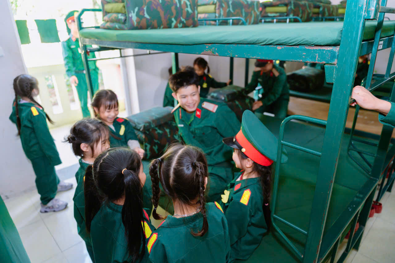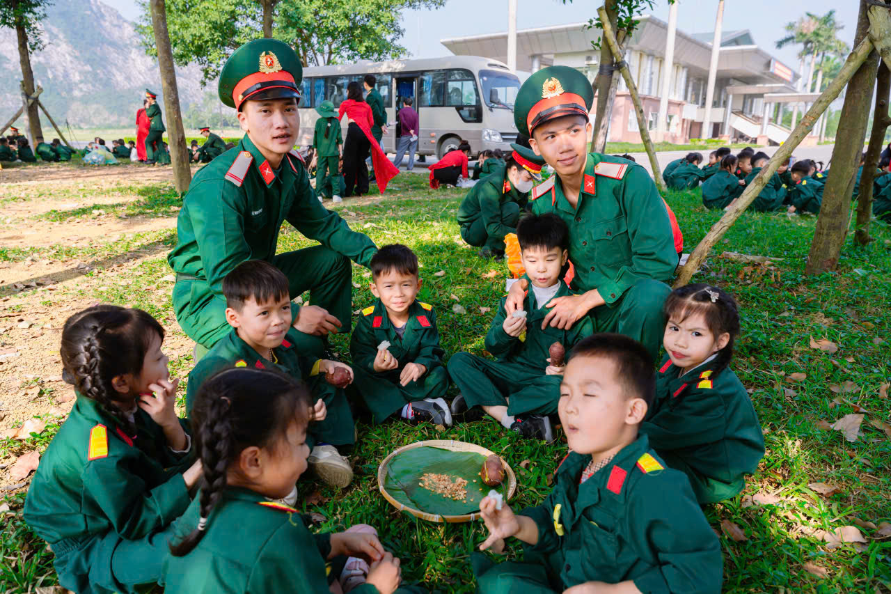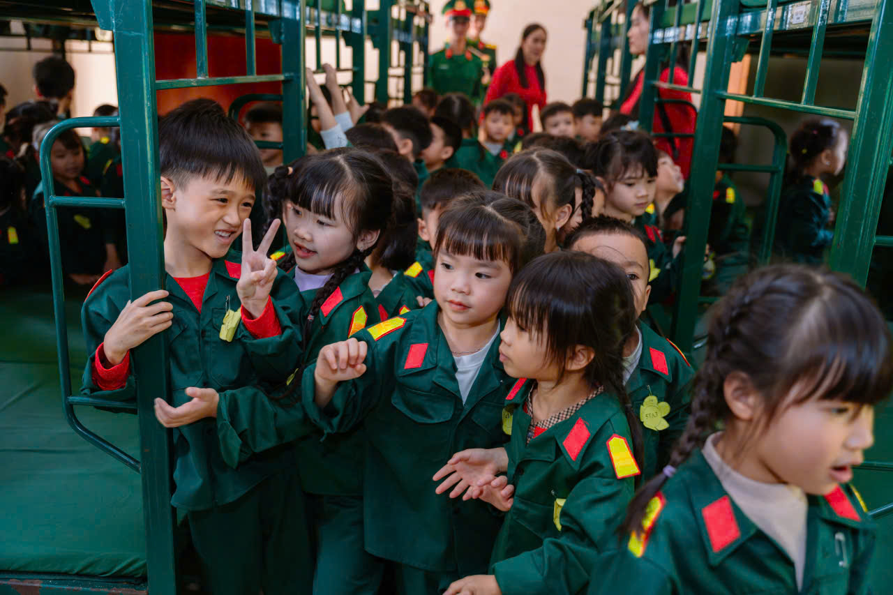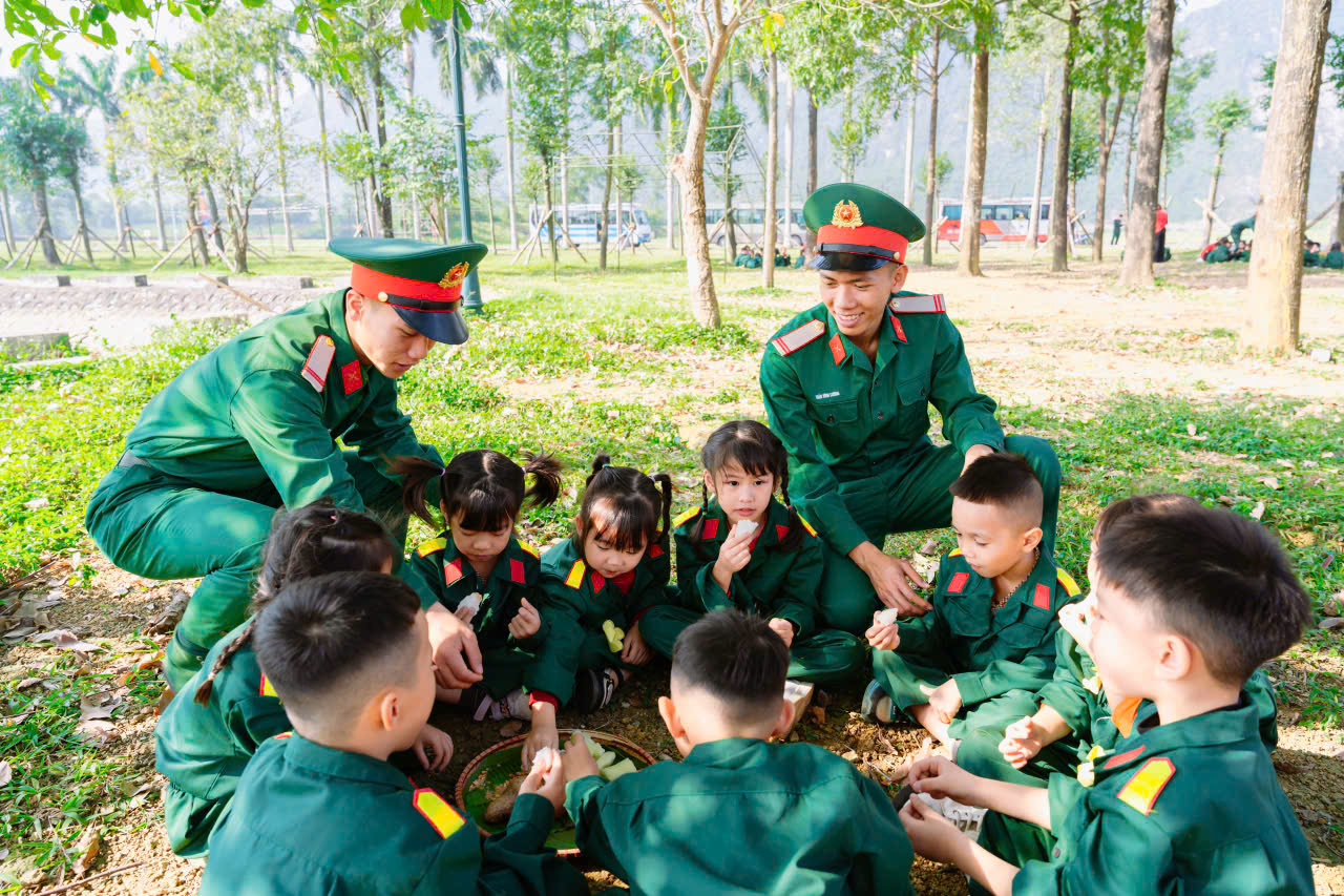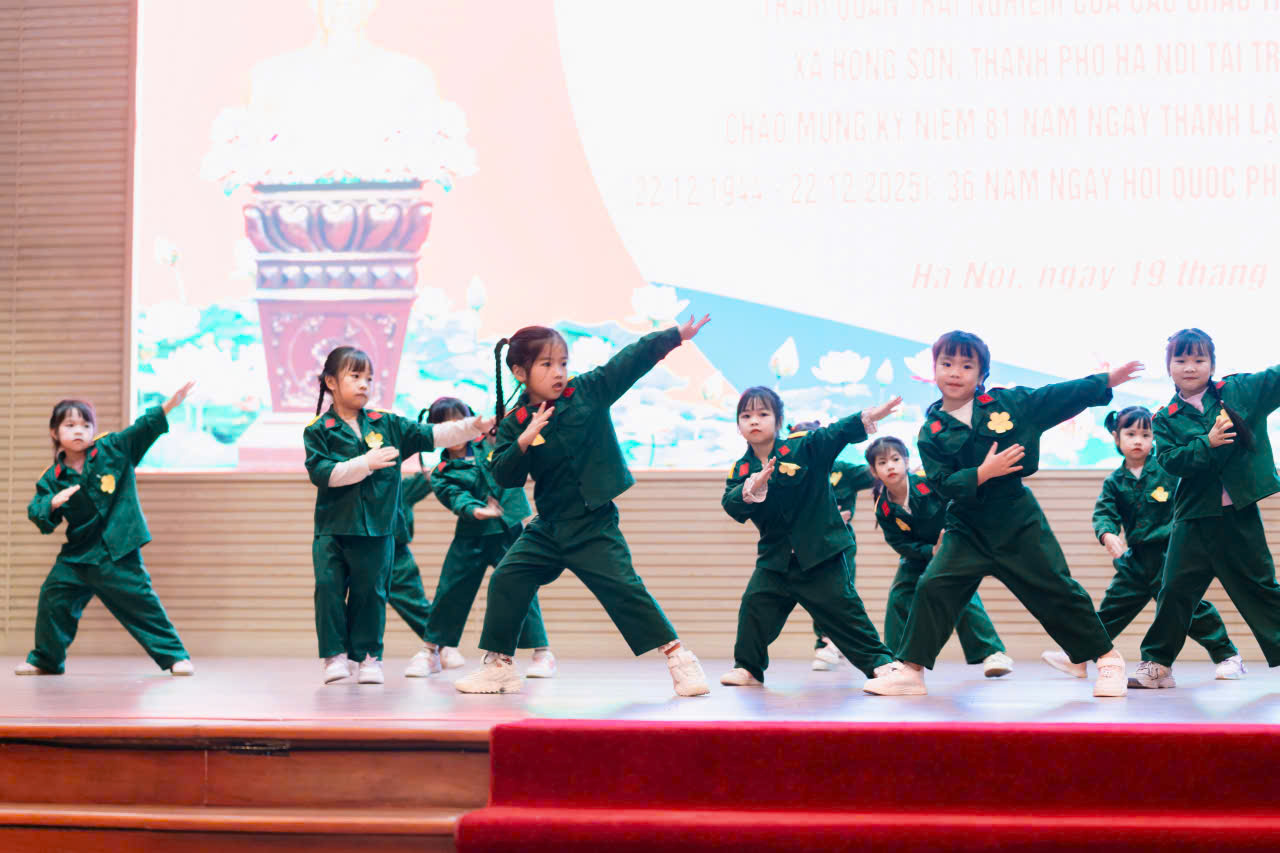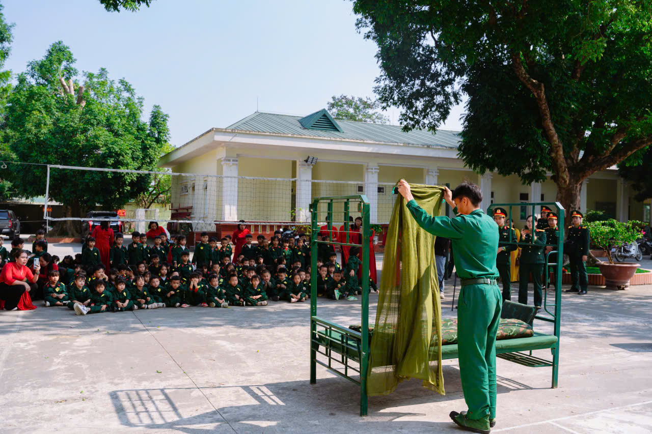 23/12/2025 A- A A+ | TRƯỜNG MN HỢP TIẾN B TỔ CHỨC HĐ TRẢI NGHIỆM THAM QUAN TTHL QUÂN SỰ QUỐC GIA 4 CHÀO MỪNG 81 NĂM NGÀY TLQĐND DÂN VIỆT NAM 22/12/1944 – 22/12/2025 Xem Chia s? Hòa chung trong không khí phấn khởi, tự hào của cả nước chào mừng 81 năm Ngày thành lập Quân đội nhân dân Việt Nam (22/12/1944 – 22/12/2025), Trường Mầm non Hợp Tiến B đã tổ chức cho các bé tham gia hoạt động trải nghiệm tham quan tại Trung tâm Huấn luyện Quân sự Quốc gia 4. Hình ảnh: Giao lưu văn nghệ của cô trò trường mầm non Hợp Tiến B Hình ảnh: Nhà trường có bố hoa dành tặng các chú bộ đội Hình ảnh các chú bộ bộ đội tặng quà cho các cháu Hình ảnh Các chú bộ đội tập luyện thể dục buổi sáng Đây là hoạt động trải nghiệm có ý nghĩa giáo dục sâu sắc, nhằm giúp trẻ được làm quen, tìm hiểu về hình ảnh người chiến sĩ Quân đội nhân dân Việt Nam, qua đó bồi dưỡng cho trẻ tình yêu quê hương, đất nước, lòng biết ơn và sự kính trọng đối với các chú bộ đội – những người luôn ngày đêm rèn luyện, sẵn sàng bảo vệ Tổ quốc, giữ gìn cuộc sống bình yên cho nhân dân. Hình ảnh các con đến thăm thao trường của các chú bộ đội Trong chuyến tham quan, các bé được trực tiếp quan sát khu doanh trại, tìm hiểu về môi trường sinh hoạt, huấn luyện của các chú bộ đội; được nghe giới thiệu về trang phục, tác phong, kỷ luật cũng như những hoạt động rèn luyện hàng ngày trong quân đội. Những nội dung trải nghiệm được tổ chức phù hợp với lứa tuổi mầm non, tạo cho trẻ sự hứng thú, tò mò và niềm vui khi tham gia. Hình ảnh: các con đến thăm nơi nghỉ của các chú bộ đội Trong chuyến tham quan tại Trung tâm Huấn luyện Quân sự Quốc gia 4, các bé được quan sát hình ảnh các chú bộ đội gấp chăn màn vuông vắn, gọn gàng. Qua đó, trẻ hiểu thêm về tính kỷ luật, nề nếp sinh hoạt và tác phong nghiêm túc của người lính, góp phần giáo dục trẻ ý thức ngăn nắp, gọn gàng ngay từ nhỏ. Hình ảnh các chú bộ đội gấp chăn màm Đặc biệt, khi đến doanh trại, các con còn được trải nghiệm ăn cơm nắm muối vừng – bữa ăn giản dị, đậm chất người lính. Qua hoạt động này, trẻ hiểu thêm về tinh thần giản dị, tiết kiệm, vượt khó của các chú bộ đội, từ đó hình thành thái độ trân trọng lao động, biết quý trọng bữa ăn và thêm yêu mến hình ảnh “Bộ đội Cụ Hồ”. Hình ảnh: Các con được ăn cơm nắm muối vừn Thông qua hoạt động trải nghiệm thực tế, các bé không chỉ có thêm những hiểu biết ban đầu về quân đội mà còn trở nên mạnh dạn, tự tin hơn, biết lắng nghe, quan sát và hình thành những cảm xúc tích cực đối với quê hương, đất nước. Đây cũng là dịp để giáo dục trẻ biết yêu hòa bình, biết ơn những người đã và đang cống hiến vì sự bình yên của Tổ quốc. Thông qua hoạt động này, Trường Mầm non Hợp Tiến B mong muốn góp phần bồi dưỡng cho trẻ những giá trị giáo dục nền tảng ngay từ lứa tuổi mầm non, đồng thời tạo nên những kỷ niệm đẹp, đáng nhớ trong hành trình trưởng thành của các con. Nhà trường xin trân trọng cảm ơn sự quan tâm, tạo điều kiện của các cấp lãnh đạo, Trung tâm Huấn luyện Quân sự Quốc gia 4, cùng sự đồng hành, phối hợp của các bậc phụ huynh đã góp phần để hoạt động diễn ra an toàn, ý nghĩa và thành công tốt đẹp. Tập tin đính kèm Tải về