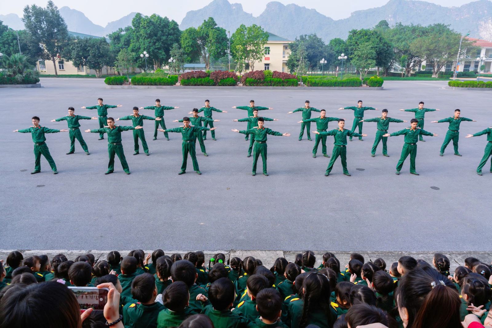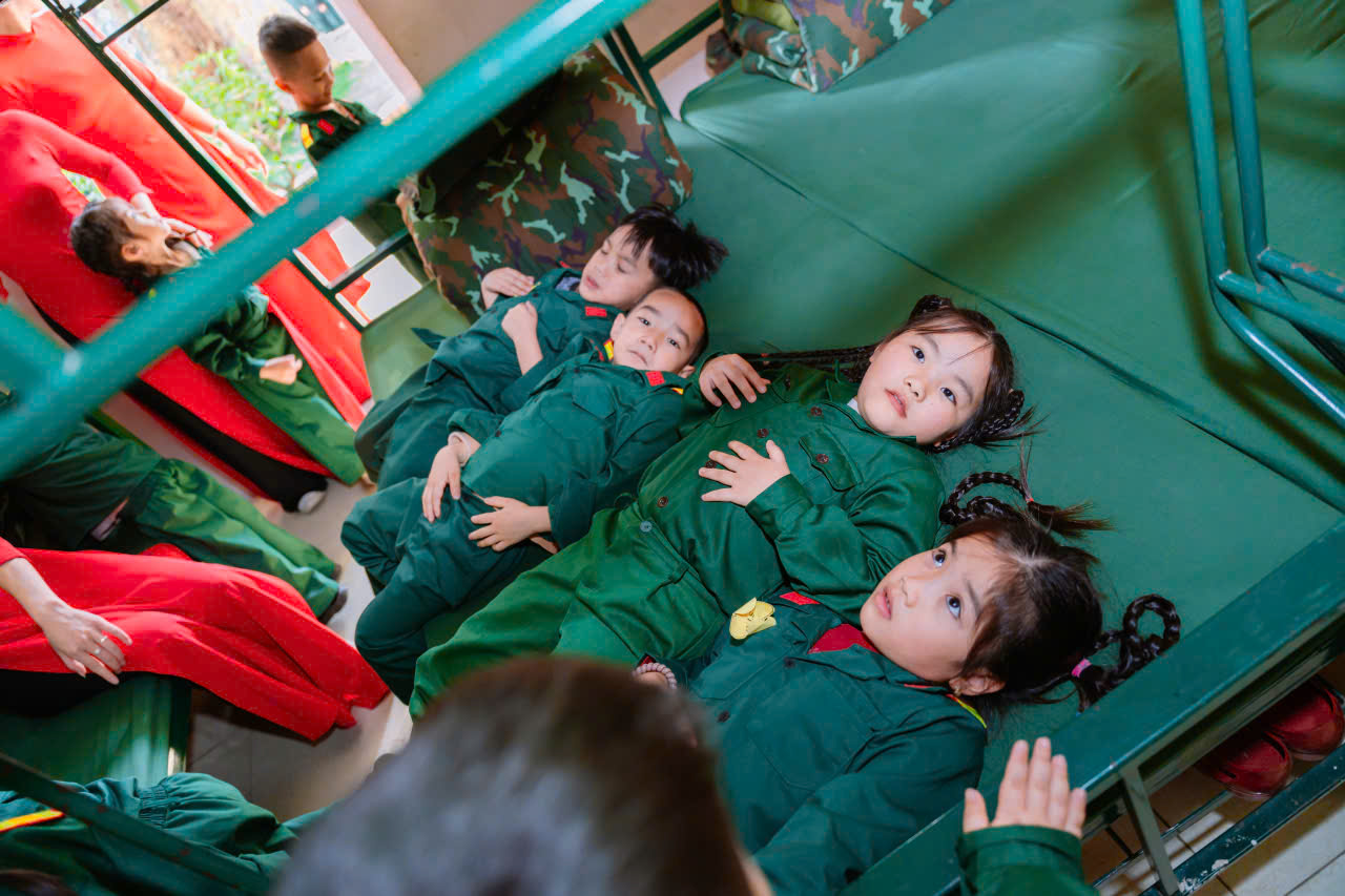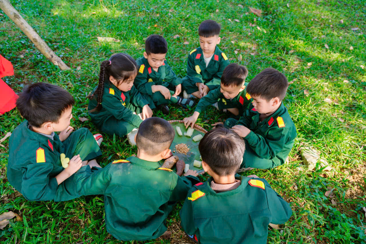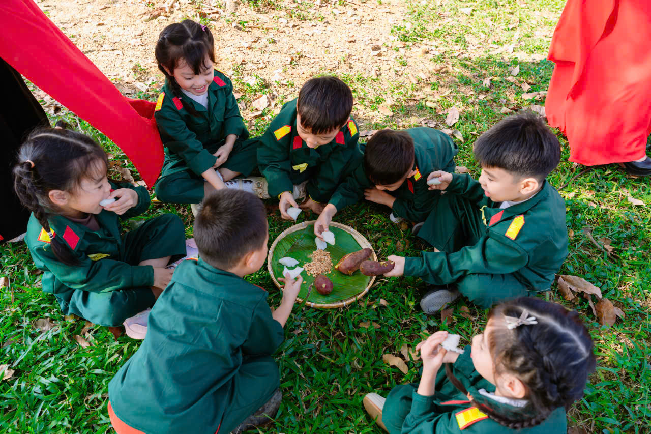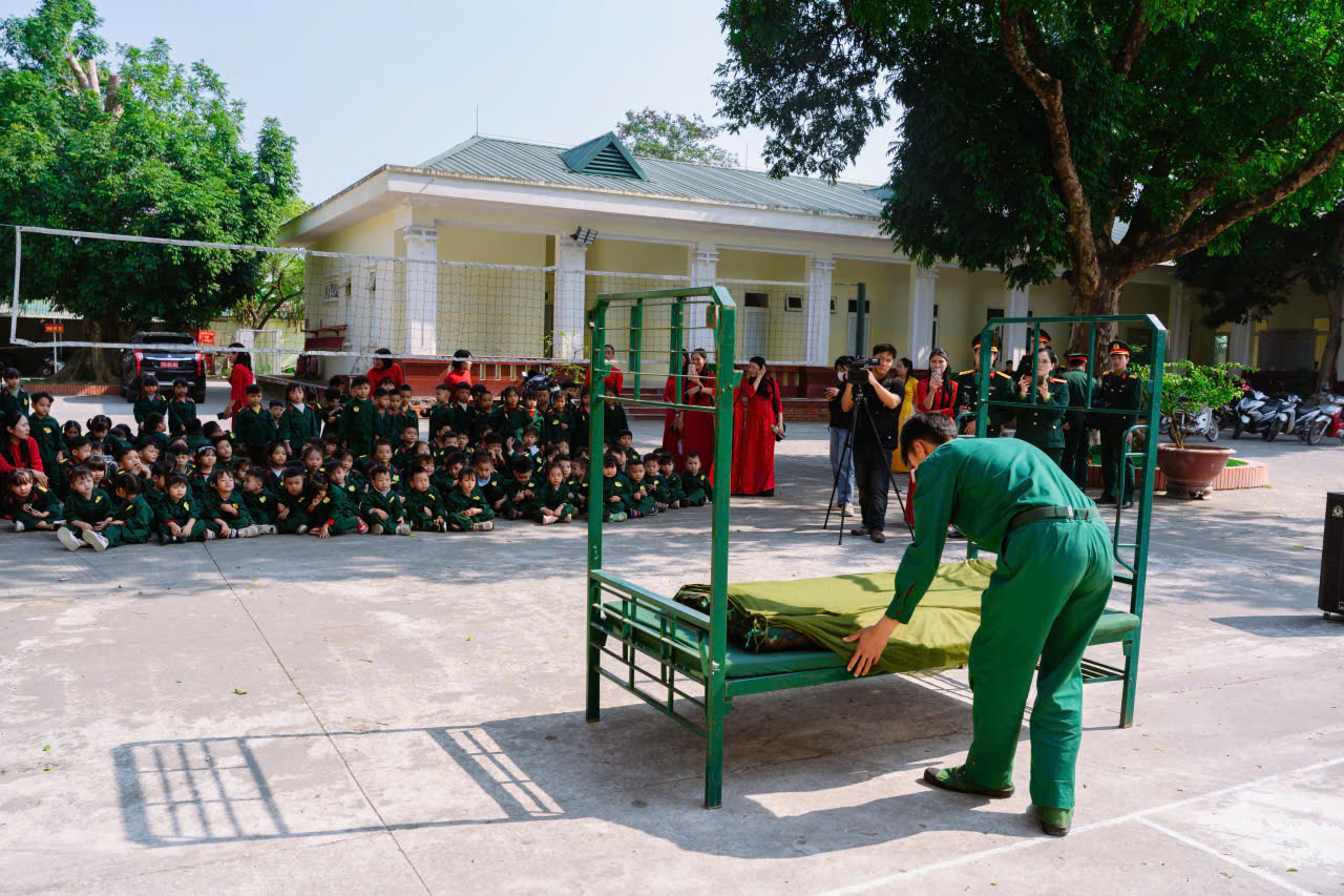 23/12/2025 A- A A+ | TRƯỜNG MN HỢP TIẾN B TỔ CHỨC HĐ TRẢI NGHIỆM THAM QUAN TTHL QUÂN SỰ QUỐC GIA 4 CHÀO MỪNG 81 NĂM NGÀY TLQĐND DÂN VIỆT NAM 22/12/1944 – 22/12/2025 Xem Chia s? Hòa chung trong không khí phấn khởi, tự hào của cả nước chào mừng 81 năm Ngày thành lập Quân đội nhân dân Việt Nam (22/12/1944 – 22/12/2025), Trường Mầm non Hợp Tiến B đã tổ chức cho các bé tham gia hoạt động trải nghiệm tham quan tại Trung tâm Huấn luyện Quân sự Quốc gia 4. Hình ảnh: Giao lưu văn nghệ của cô trò trường mầm non Hợp Tiến B Hình ảnh: Nhà trường có bố hoa dành tặng các chú bộ đội Hình ảnh các chú bộ bộ đội tặng quà cho các cháu Hình ảnh Các chú bộ đội tập luyện thể dục buổi sáng Đây là hoạt động trải nghiệm có ý nghĩa giáo dục sâu sắc, nhằm giúp trẻ được làm quen, tìm hiểu về hình ảnh người chiến sĩ Quân đội nhân dân Việt Nam, qua đó bồi dưỡng cho trẻ tình yêu quê hương, đất nước, lòng biết ơn và sự kính trọng đối với các chú bộ đội – những người luôn ngày đêm rèn luyện, sẵn sàng bảo vệ Tổ quốc, giữ gìn cuộc sống bình yên cho nhân dân. Hình ảnh các con đến thăm thao trường của các chú bộ đội Trong chuyến tham quan, các bé được trực tiếp quan sát khu doanh trại, tìm hiểu về môi trường sinh hoạt, huấn luyện của các chú bộ đội; được nghe giới thiệu về trang phục, tác phong, kỷ luật cũng như những hoạt động rèn luyện hàng ngày trong quân đội. Những nội dung trải nghiệm được tổ chức phù hợp với lứa tuổi mầm non, tạo cho trẻ sự hứng thú, tò mò và niềm vui khi tham gia. Hình ảnh: các con đến thăm nơi nghỉ của các chú bộ đội Trong chuyến tham quan tại Trung tâm Huấn luyện Quân sự Quốc gia 4, các bé được quan sát hình ảnh các chú bộ đội gấp chăn màn vuông vắn, gọn gàng. Qua đó, trẻ hiểu thêm về tính kỷ luật, nề nếp sinh hoạt và tác phong nghiêm túc của người lính, góp phần giáo dục trẻ ý thức ngăn nắp, gọn gàng ngay từ nhỏ. Hình ảnh các chú bộ đội gấp chăn màm Đặc biệt, khi đến doanh trại, các con còn được trải nghiệm ăn cơm nắm muối vừng – bữa ăn giản dị, đậm chất người lính. Qua hoạt động này, trẻ hiểu thêm về tinh thần giản dị, tiết kiệm, vượt khó của các chú bộ đội, từ đó hình thành thái độ trân trọng lao động, biết quý trọng bữa ăn và thêm yêu mến hình ảnh “Bộ đội Cụ Hồ”. Hình ảnh: Các con được ăn cơm nắm muối vừn Thông qua hoạt động trải nghiệm thực tế, các bé không chỉ có thêm những hiểu biết ban đầu về quân đội mà còn trở nên mạnh dạn, tự tin hơn, biết lắng nghe, quan sát và hình thành những cảm xúc tích cực đối với quê hương, đất nước. Đây cũng là dịp để giáo dục trẻ biết yêu hòa bình, biết ơn những người đã và đang cống hiến vì sự bình yên của Tổ quốc. Thông qua hoạt động này, Trường Mầm non Hợp Tiến B mong muốn góp phần bồi dưỡng cho trẻ những giá trị giáo dục nền tảng ngay từ lứa tuổi mầm non, đồng thời tạo nên những kỷ niệm đẹp, đáng nhớ trong hành trình trưởng thành của các con. Nhà trường xin trân trọng cảm ơn sự quan tâm, tạo điều kiện của các cấp lãnh đạo, Trung tâm Huấn luyện Quân sự Quốc gia 4, cùng sự đồng hành, phối hợp của các bậc phụ huynh đã góp phần để hoạt động diễn ra an toàn, ý nghĩa và thành công tốt đẹp. Tập tin đính kèm Tải về